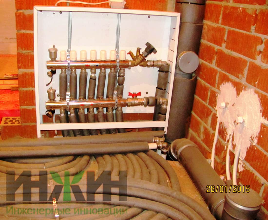 - Смонтировано два контура теплоснабжения (без магистрального коллектора)– отопление и горячее водоснабжение;