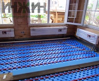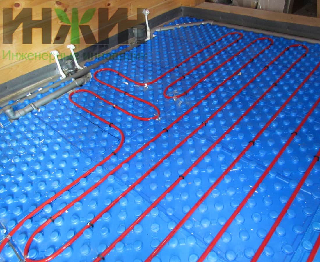 - Монтаж водяного теплого пола выполнен на матах с бобышками и пленкой Формат на площади 132 м.кв.;