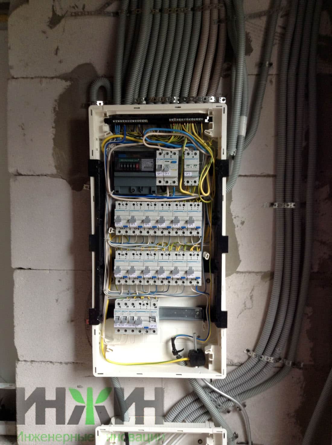 - выполнен монтаж распределительного щита с установкой в нем автоматических выключателей, дифференциальных автоматов и УЗО в количестве 21 шт.;