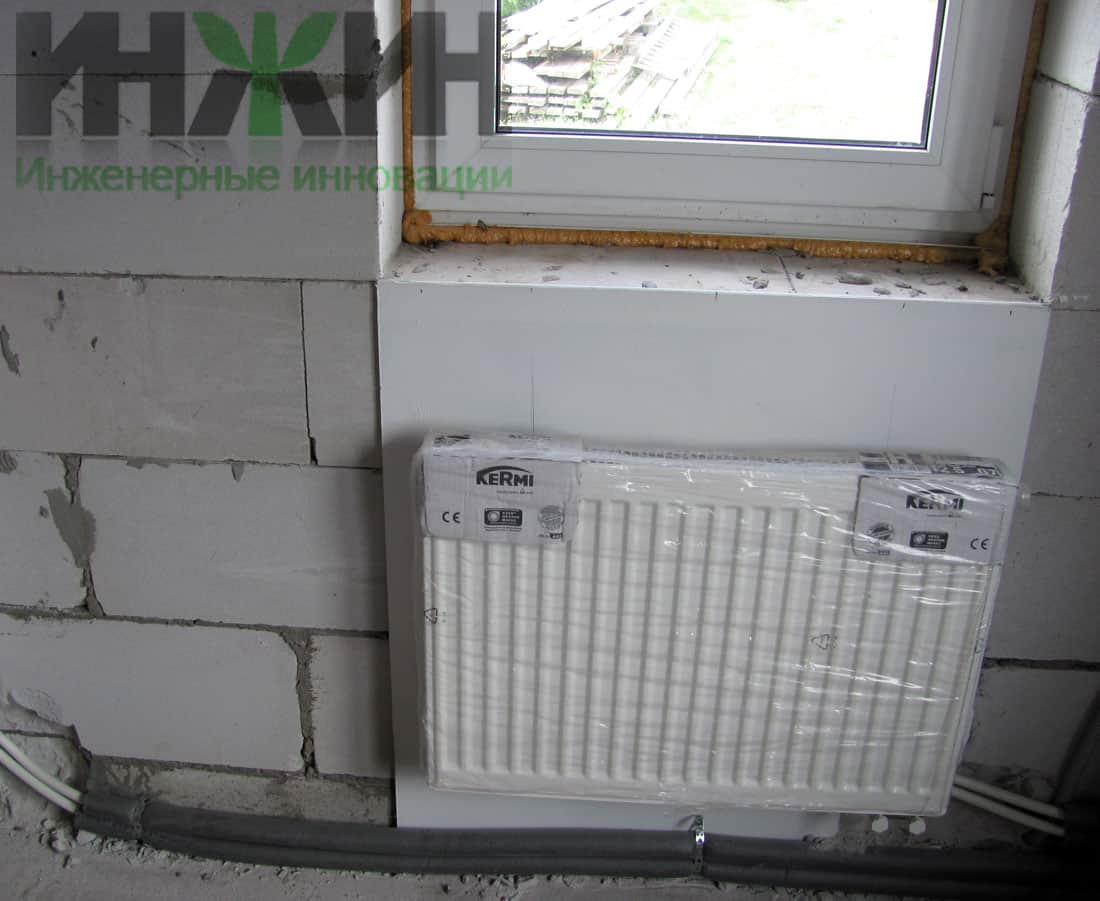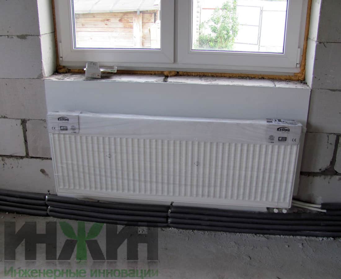 - Установлено 10 стальных панельных радиаторов Kermi с нижним подключением;