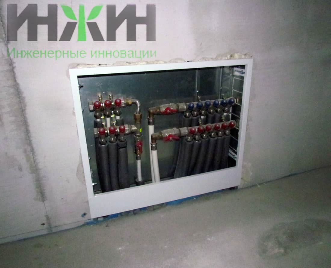 - Установлено 2 распределительных коллектора с расходомерами Oventrop Multidis SF на 2 и 6 отводов;