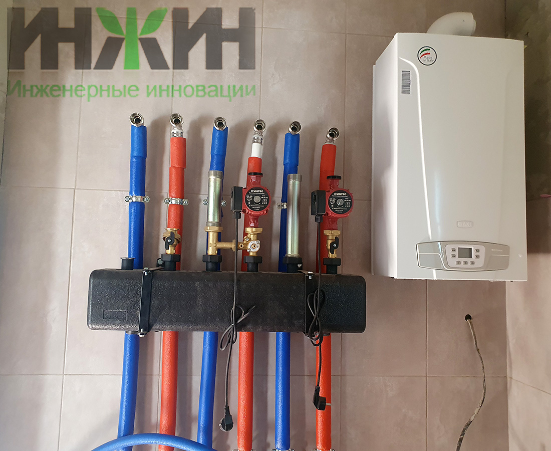 - Коллектор Meibes с тремя насосными группами - для отопления дома, водяного теплого пола и горячего водоснабжения;