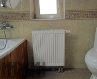 - Для отопления дома установлено 40 стальных панельных радиаторов Kermi с нижним подключением;