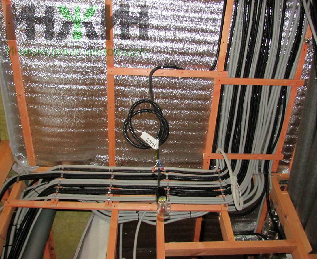 - выполнена укладка 2 280 метров силового кабеля ВВГнг –LS разного сечения в гофрированной ПВХ трубе и металлорукаве в виниловой изоляции (во всех деревянных конструкциях);