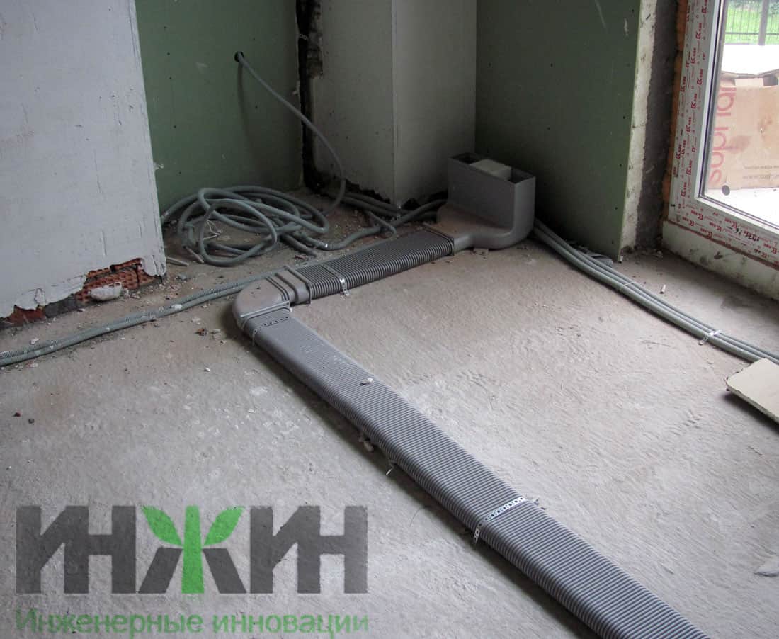 - Смонтирована воздухораспределительная система Zehnder OnFloor на основе шумоизолирующих пластиковых воздуховодов;