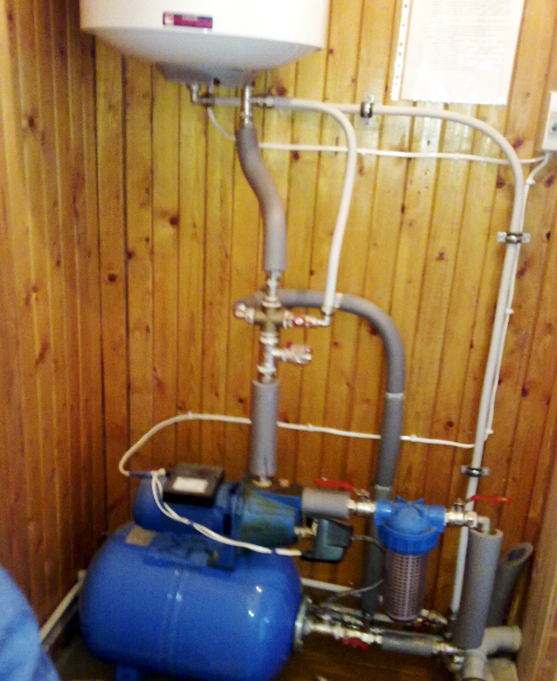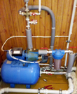 3. Выполнен монтаж насосной станции Grundfos Hydrojet JP 6 с накопительной емкостью, для забора холодной воды из колодца и подачи ее внутрь дома.