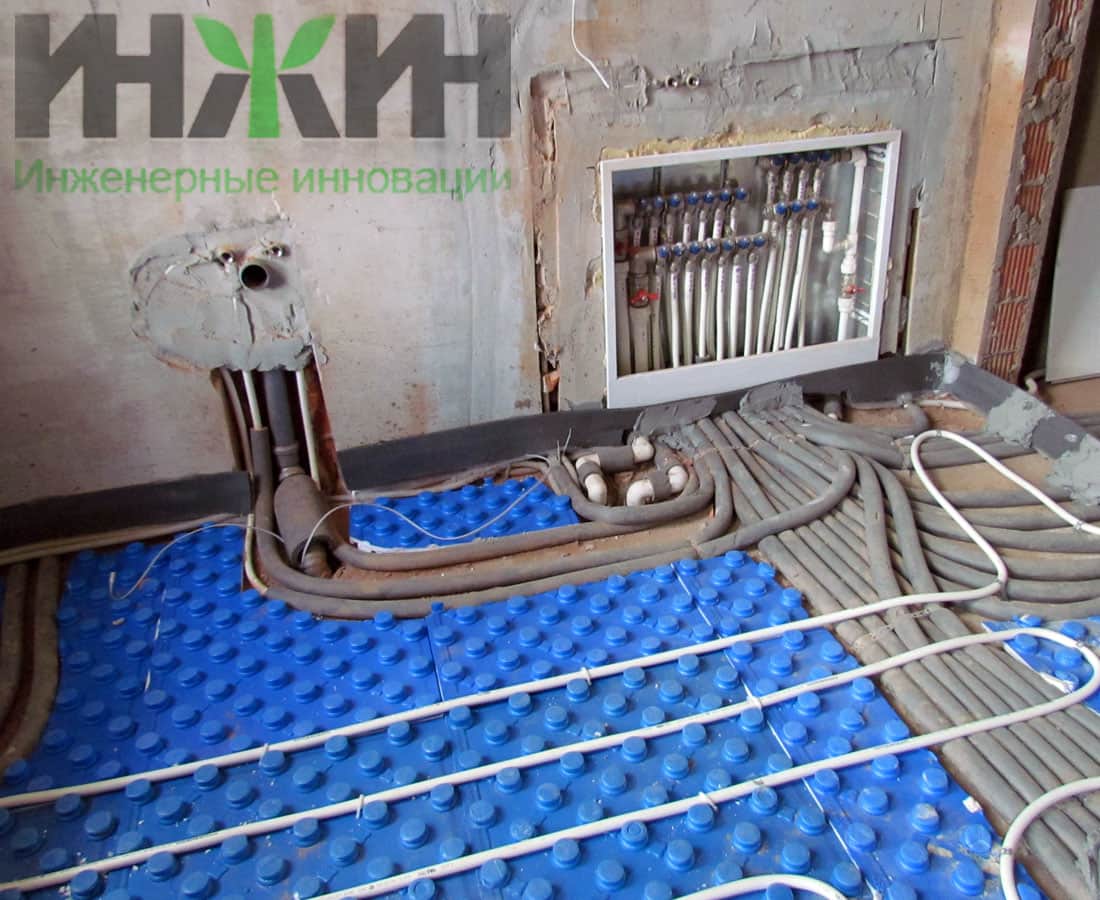 Монтаж напольного отопления Монтаж коллектора водоснабжения Монтаж трубопроводов канализации и водопровода под потолком