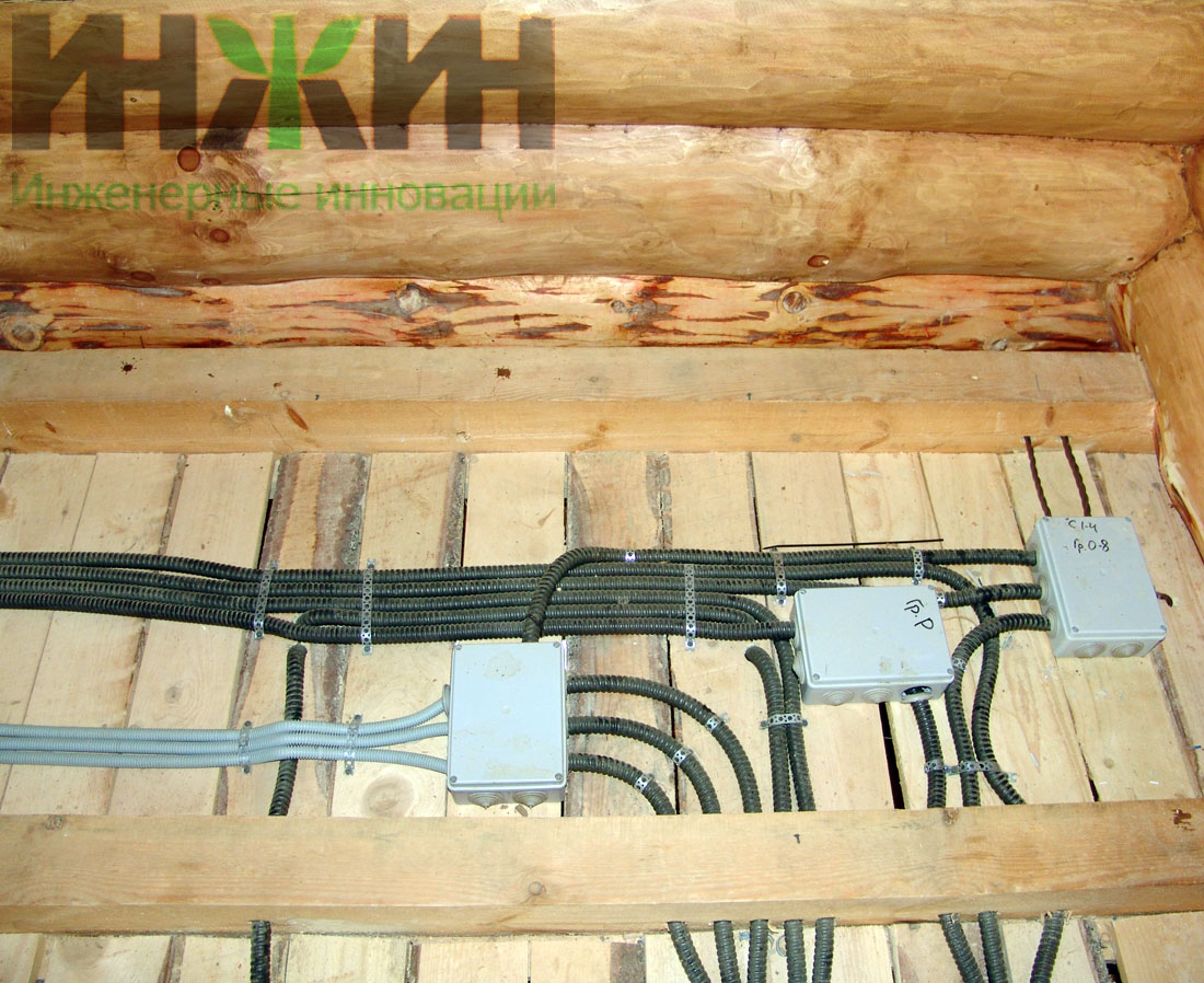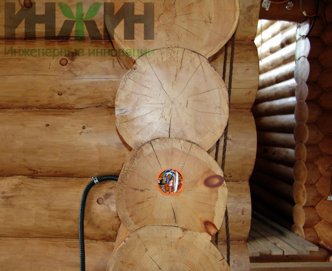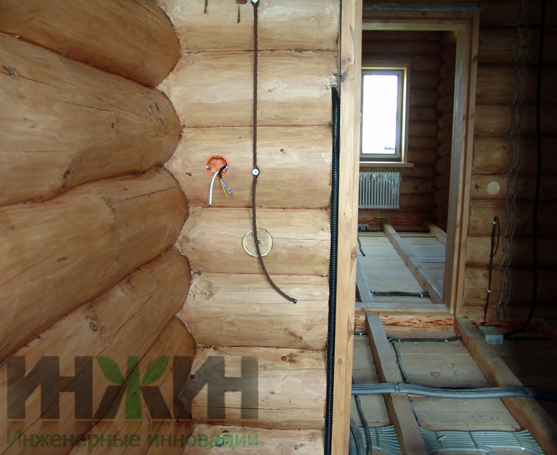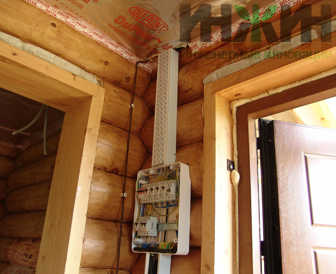 Монтаж электрики деревянного дома выполнен по проекту нашей компании.