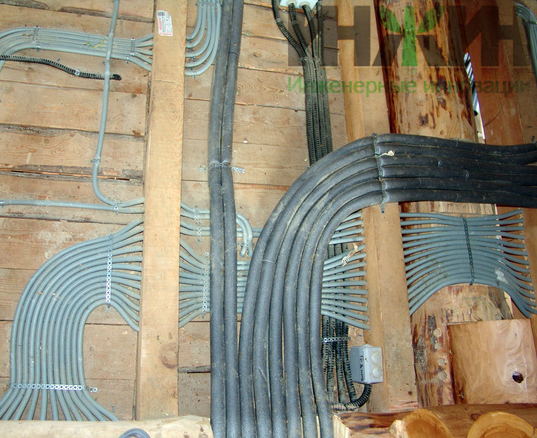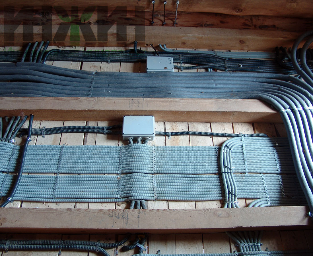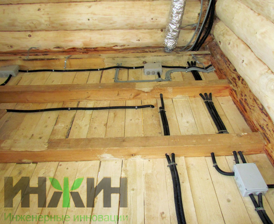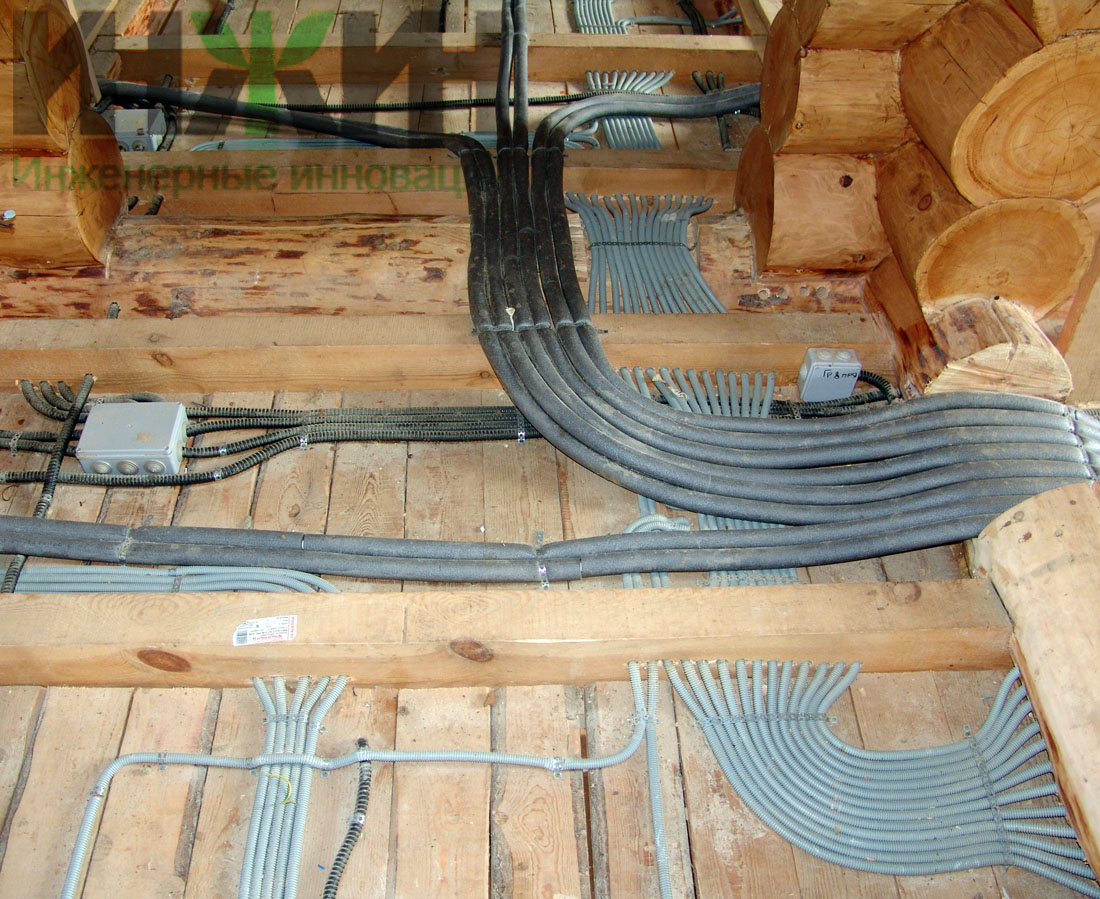 Монтаж электрики деревянного дома выполнен по проекту нашей компании.