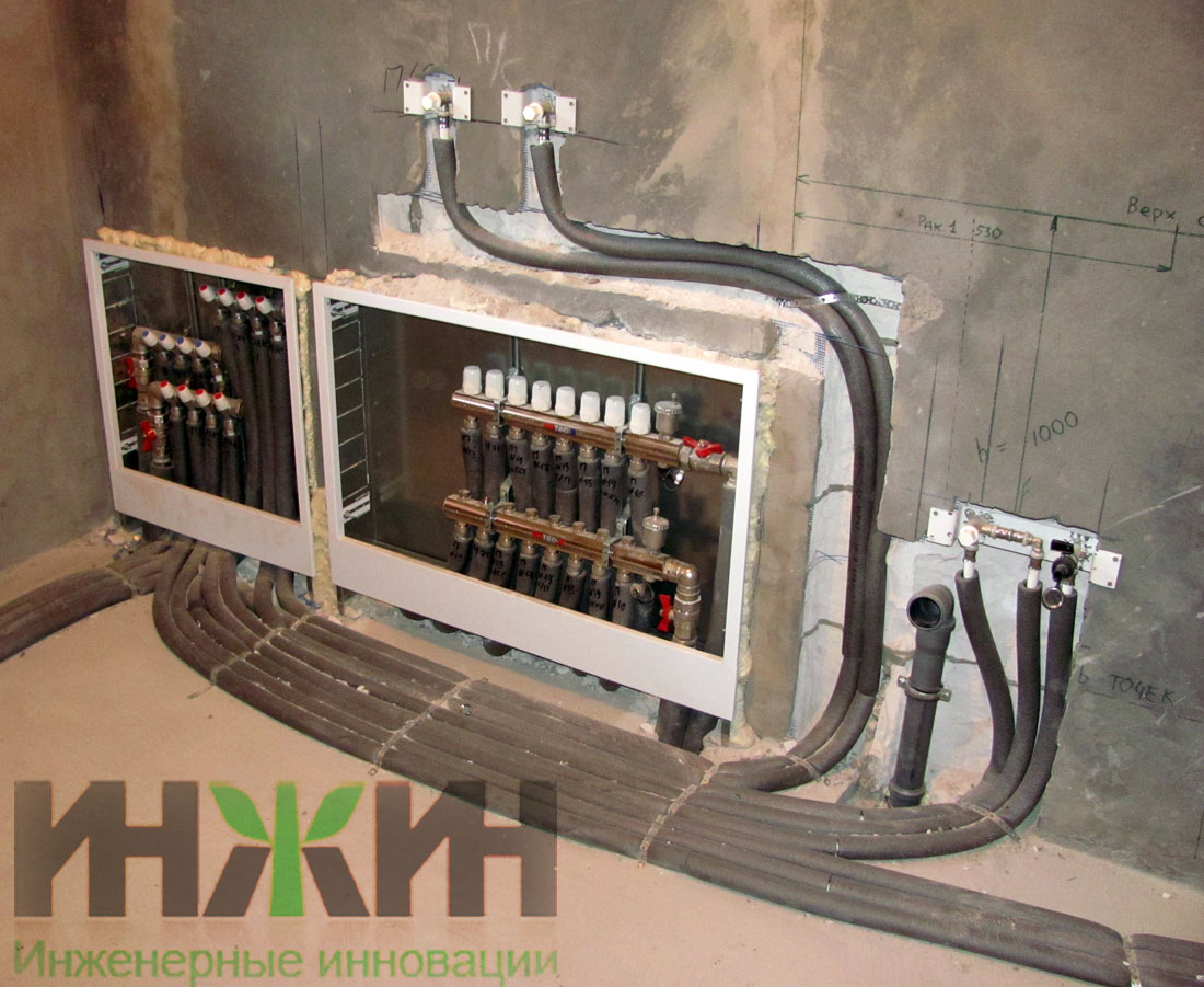 - Монтаж водопровода выполнен по коллекторно-лучевой схеме, смонтировано 2 сборных распределительных коллектора Valtec;