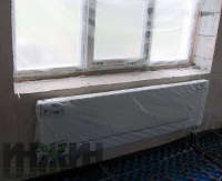- Установлено 17 стальных панельных радиаторов Kermi с нижним подключением, высотой от 200 до 500мм, а также 3 встроенных в пол конвектора Varmann с естественной конвекцией;