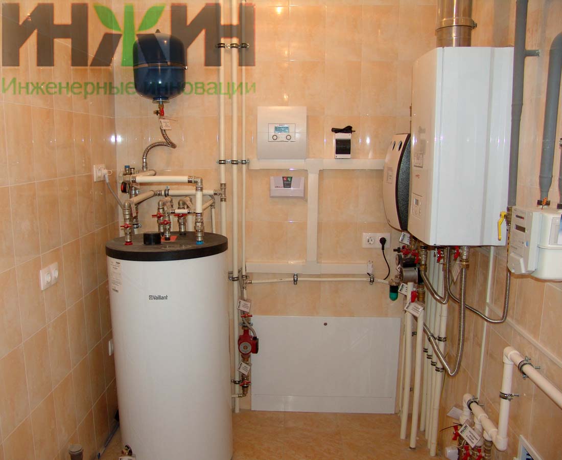 - Для приготовления горячей воды установлен бойлер Vaillant uniSTOR, объемом 200 литров;