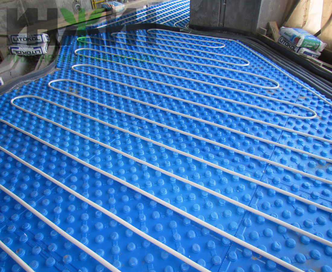 - Водяной теплый пол смонтирован на площади 110 м.кв.