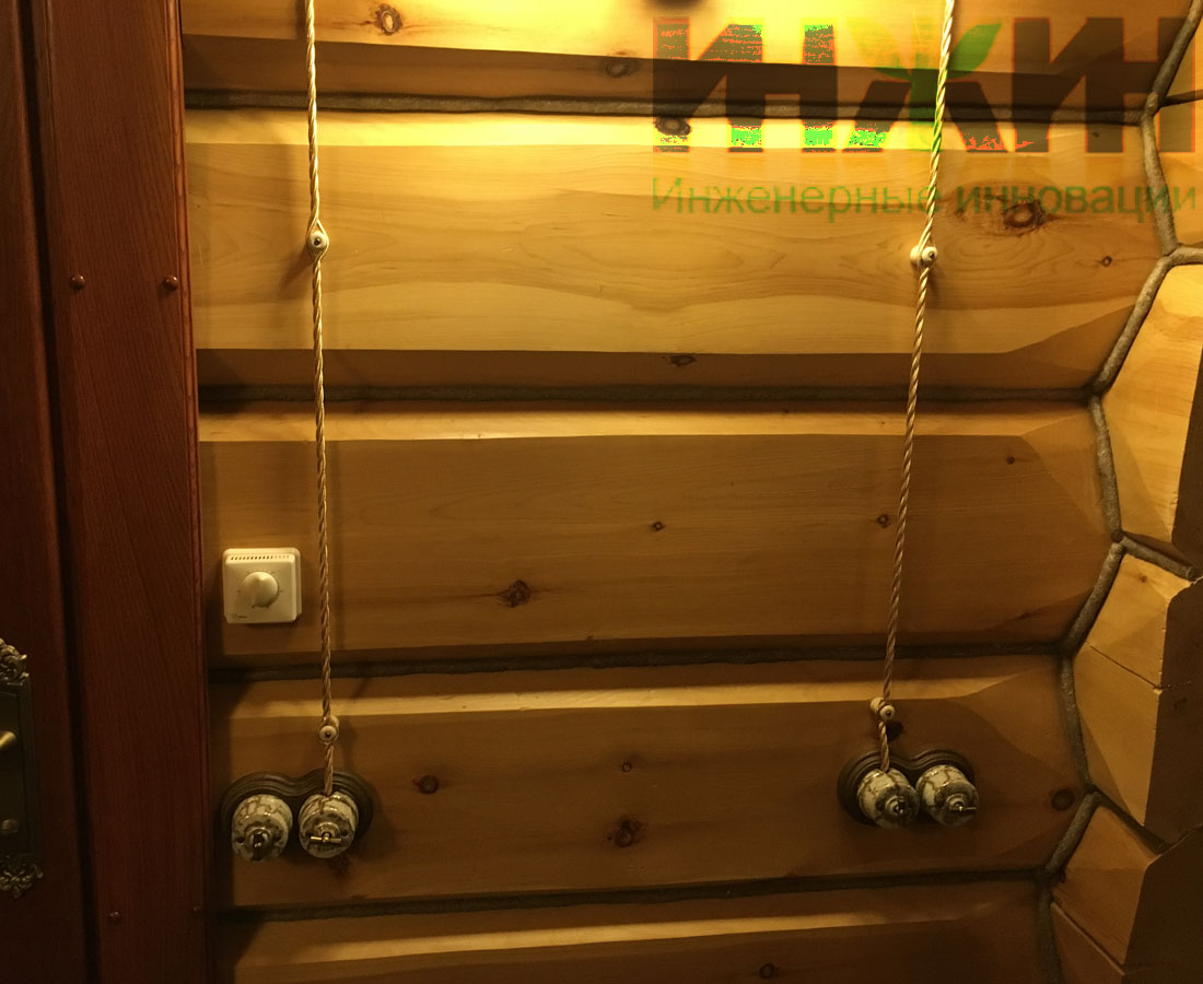 - Скрытым способом выполнен монтаж 650 метров декоративного витого ретро-кабеля Salvador CAR/L3 разного сечения;