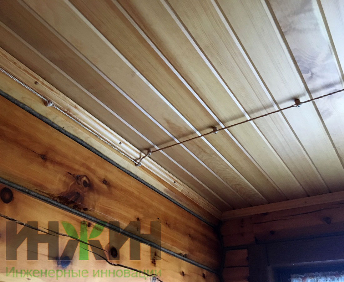 - Прокладка кабельных линий выполнена открытым способом – по деревянным стенам и потолкам;