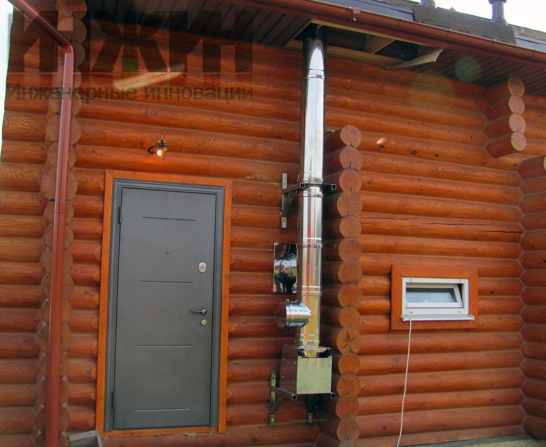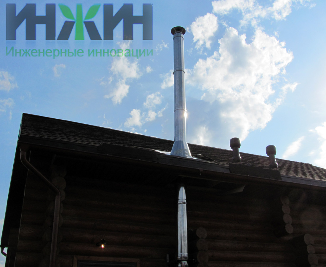 - Установка комплекта утепленного дымохода Rosinox из нержавеющей стали, размещение снаружи дома.