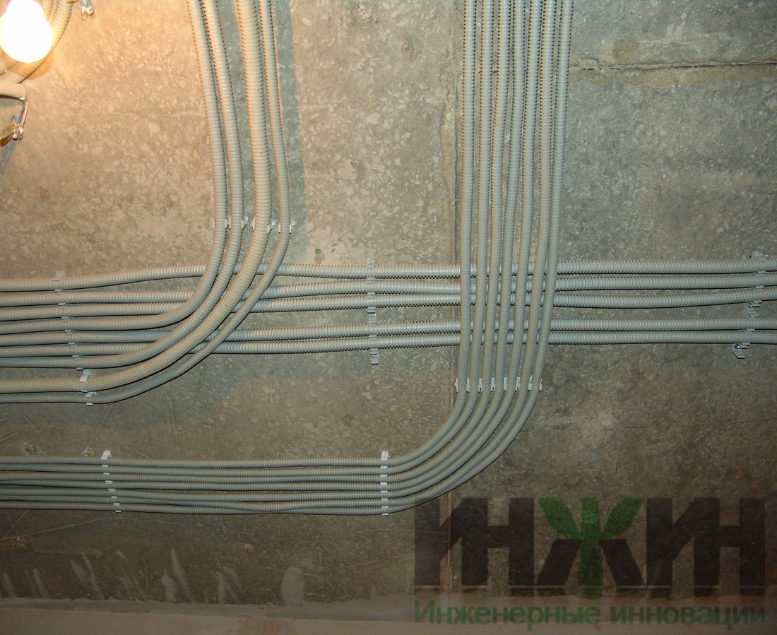 - Выполнен монтаж 300 метров кабеля SAT 703 в гофрированной ПВХ трубе, скрытым способом;