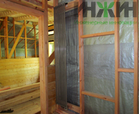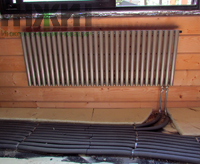 - Установлено 17 стальных трубчатых радиаторов "Гармония" (КЗТО) и 7 встроенных в пол конвекторов "Бриз" (КЗТО);