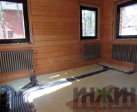 - Монтаж трех контуров теплоснабжения деревянного дома – отопления дома, водяного теплого пола и горячего водоснабжения (накопительного бойлера);