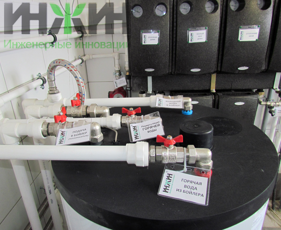 - Монтаж шести контуров теплоснабжения деревянного дома и бани (радиаторное отопление дома, радиаторное отопление бани, водяной теплый дома, теплый бани, горячее водоснабжение всех строений, теплоснабжение летнего бассейна);
