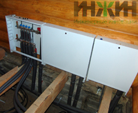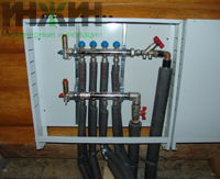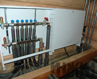 - Смонтировано четыре распределительных коллектора Rehau: на 5 и 6 отводов - в доме, на 4 отвода (2 шт.) - в бане;