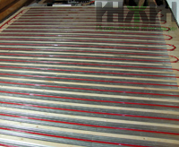 - Монтаж водяного теплого пола выполнен на площади 98 м.кв., применена технология "сухой" укладки, по деревянному полу и теплораспределительным пластинам Valtec, уложено 432 пластины;