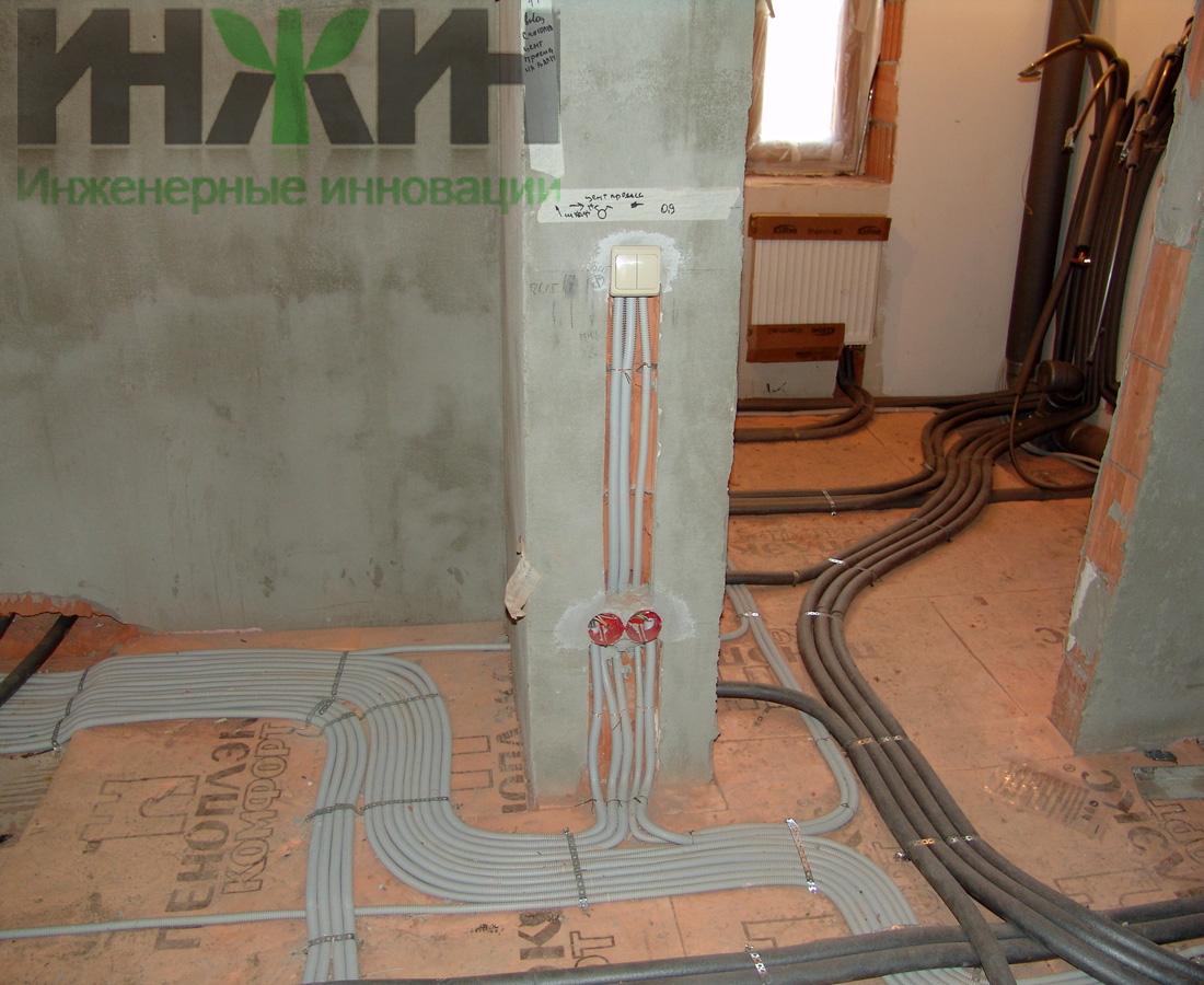 - Укладка кабельных линий выполнена скрытым способом – в конструкции пола и стен из керамических блоков;