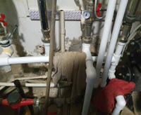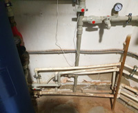 - Демонтаж распределительного коллектора, расширительных баков, насосного оборудования, запорной арматуры обвязки котла, бойлера и распределительного коллектора;