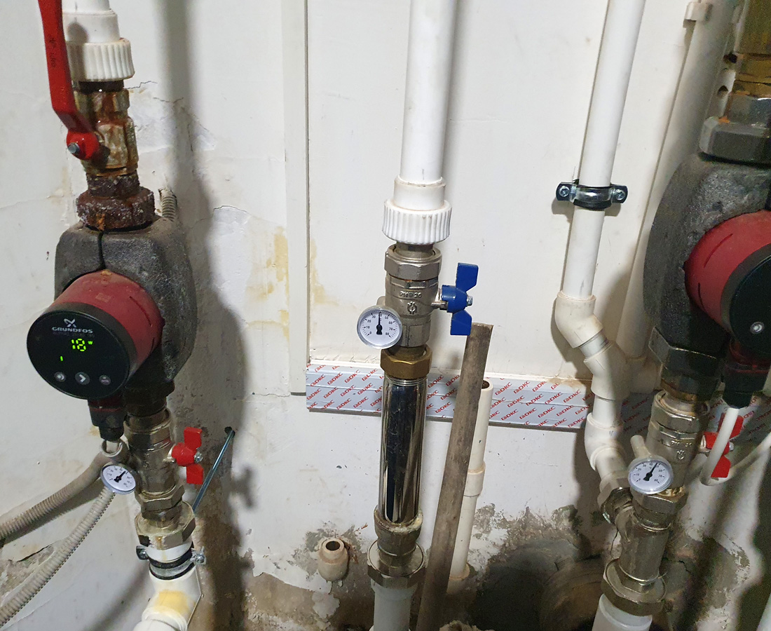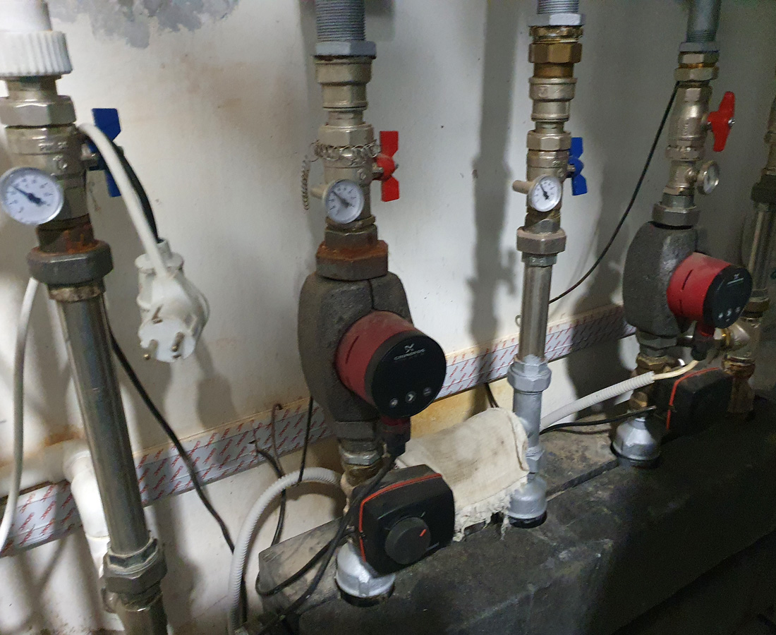 - Монтаж шести циркуляционных насосов и насоса рециркуляции горячей воды Grundfos;