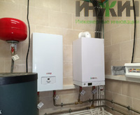 - Установка двух теплогенераторов - основного, настенного газового котла Viessmann, мощностью 24 кВт (с закрытой камерой сгорания) и резервного - электрического котла Protherm Скат, мощностью 9 кВт (поставка Заказчика);