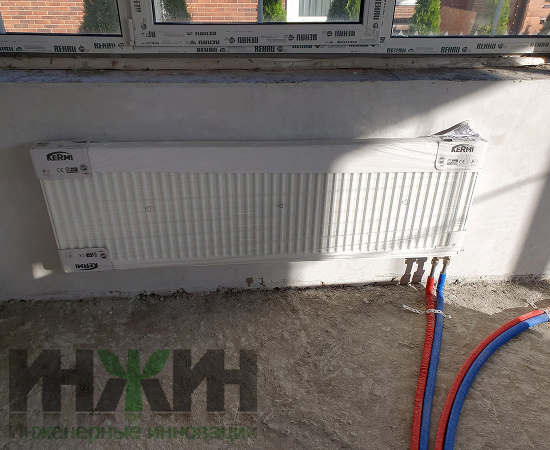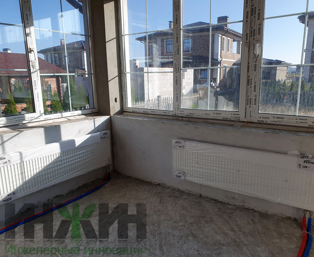 - Установлено 14 стальных панельных радиаторов Kermiс нижним подключением;