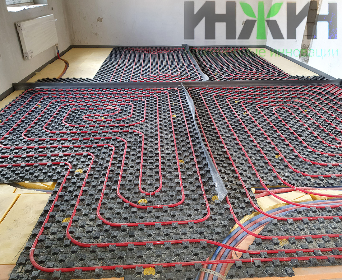 - Монтаж водяного теплого пола выполнен на плита ENERGOFLOOR PIPELOCK на площади 26 м.кв.;