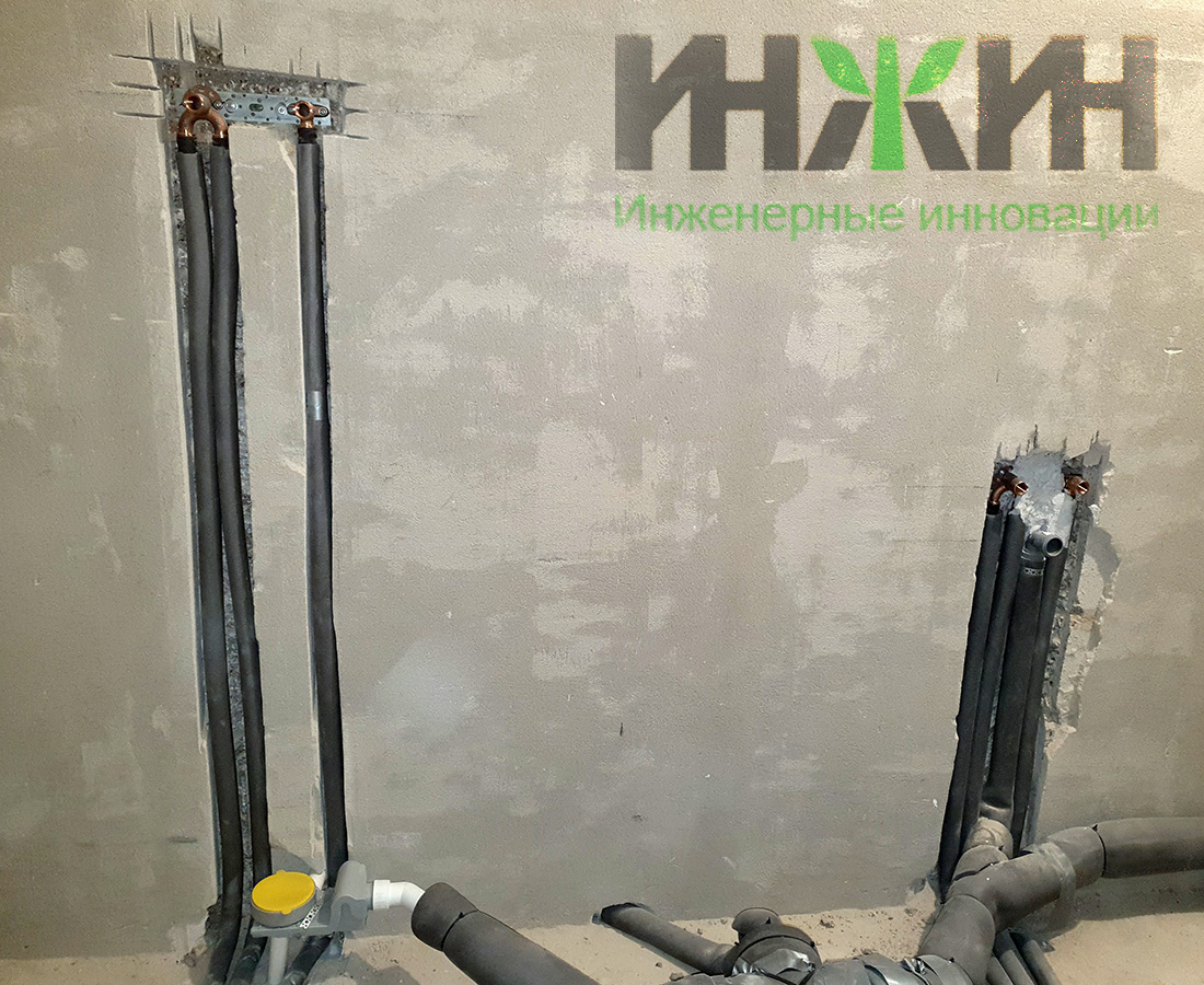 - Выполнен монтаж 43 точек водоснабжения и полотенцесушителей, из них 26 тупиковых и 17 проходных (с рециркуляцией горячей воды);