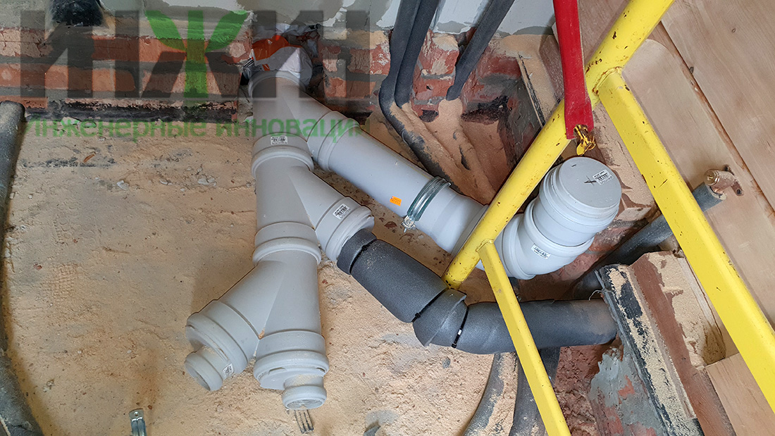 - Трубопроводы канализации – раструбные, системы малошумной канализации Skolan Safe Ostendorf, проложено 56 метров труб диаметром 58 и 110мм.