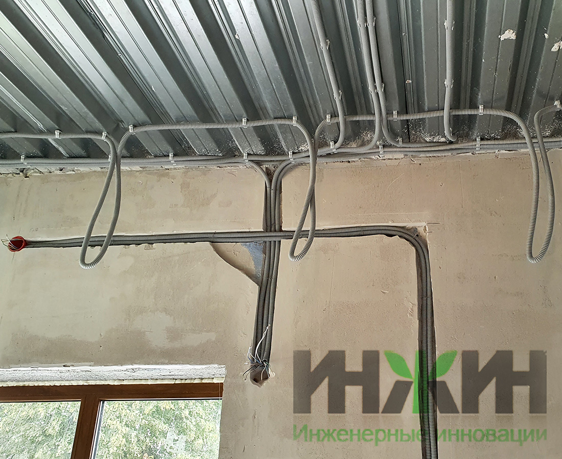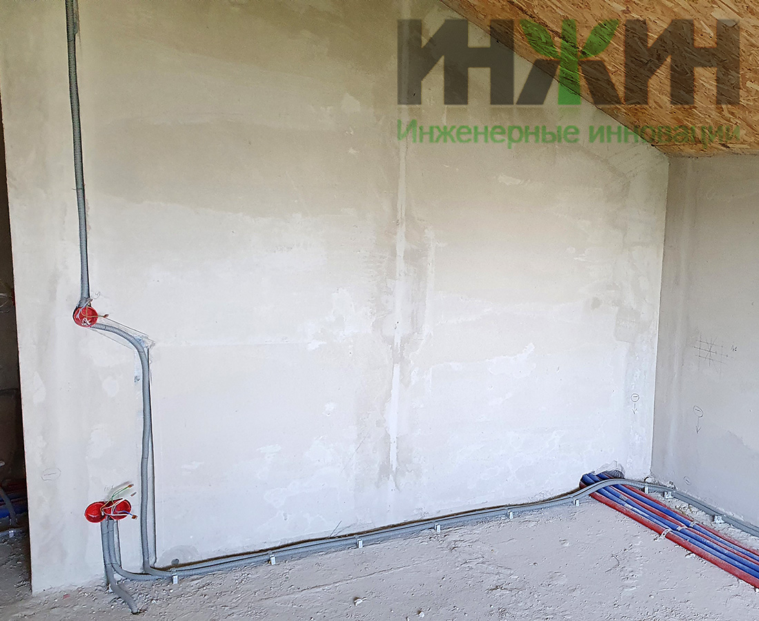 - Укладка кабельных линий выполнена скрытым способом – в конструкции пола и стен из полистиролбетона;
