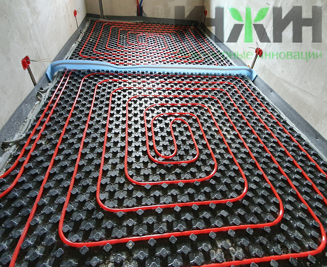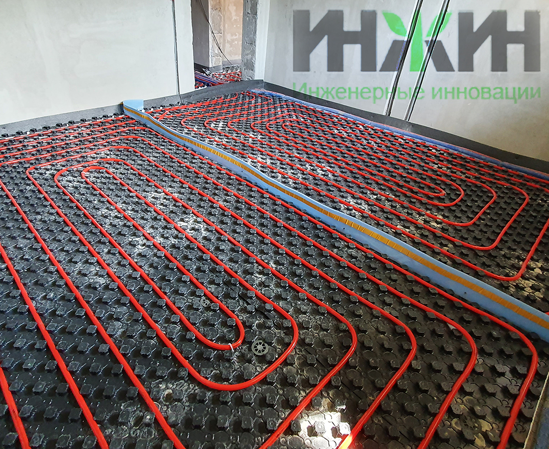 - Монтаж водяного теплого пола выполнен на матах с бобышками и пленкой STOUT на площади 228 м.кв.;