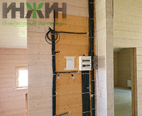 Монтаж электрики загородного дома из бревнавыполнен по проекту электрики нашей компании.