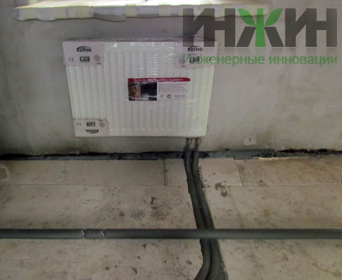 - Радиаторное отопление смонтировано с использованием стальных панельных радиаторов Kermi с нижним и боковым подключением, выполнен монтаж 27-и радиаторов отопления;
