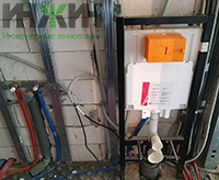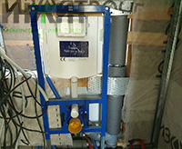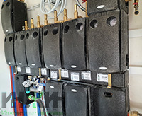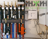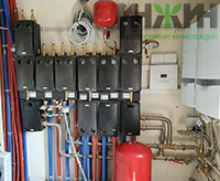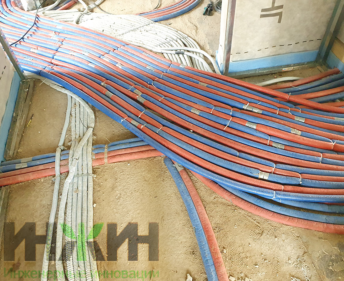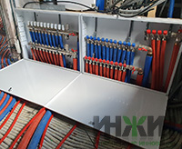 - Монтаж распределительного коллектора Meibes с насосно-смесительными группами и гидравлическими стрелками;
