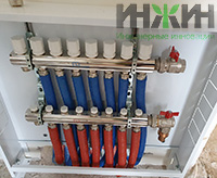 - Смонтированы распределительные коллекторы Valtec и STOUT на 4, 6, 8 (2 шт.) и 11 отводов;
