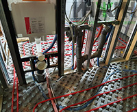 - Монтаж водяного теплого пола выполнен на матах с бобышками и пленкой Формат на площади 175 м.кв.;