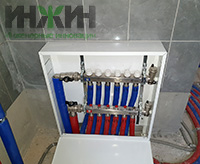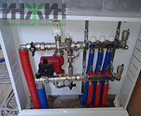 - Установлен распределительный коллектор с расходомерами Valtec на 3 отвода с насосно-смесительным узлом VALMIX;