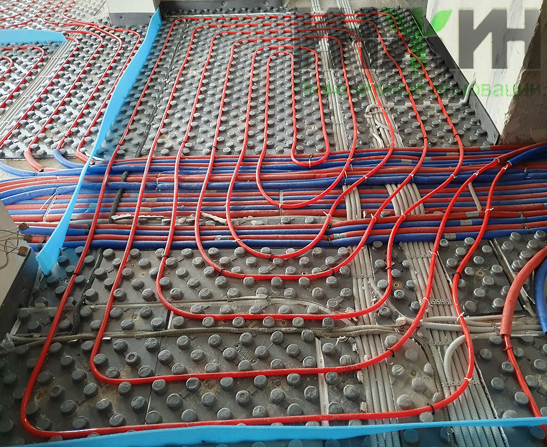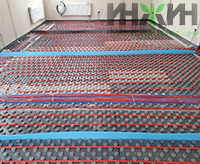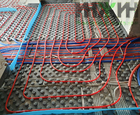 - Монтаж водяного теплого пола выполнен на матах с бобышками и пленкой EasyFix L на площади 70 м.кв.;