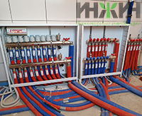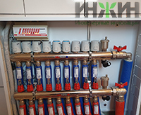 - Установлены распределительные коллекторы с расходомерами Valtec на 9 отводов;