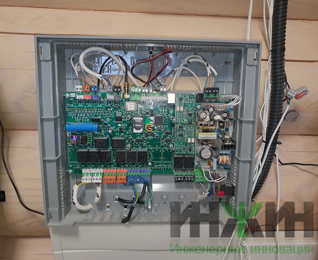 - Монтаж и пуско-наладка автоматики котельной – встроенной в газовый котел, с дополнительным GSM-контроллером ZONT.