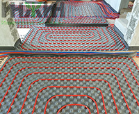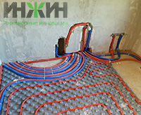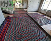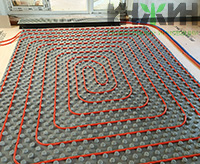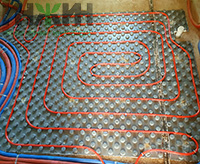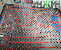 - Монтаж водяного теплого пола выполнен на матах с бобышками и пленкой Формат на площади 30 м.кв.;