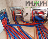 - Монтаж распределительного коллектора STOUT с насосно-смесительными группами;