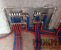 - Монтаж трёх контуров теплоснабжения - радиаторного отопления дома, теплого пола и горячего водоснабжения;