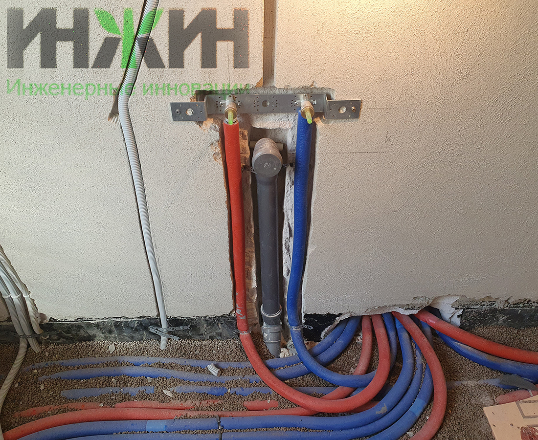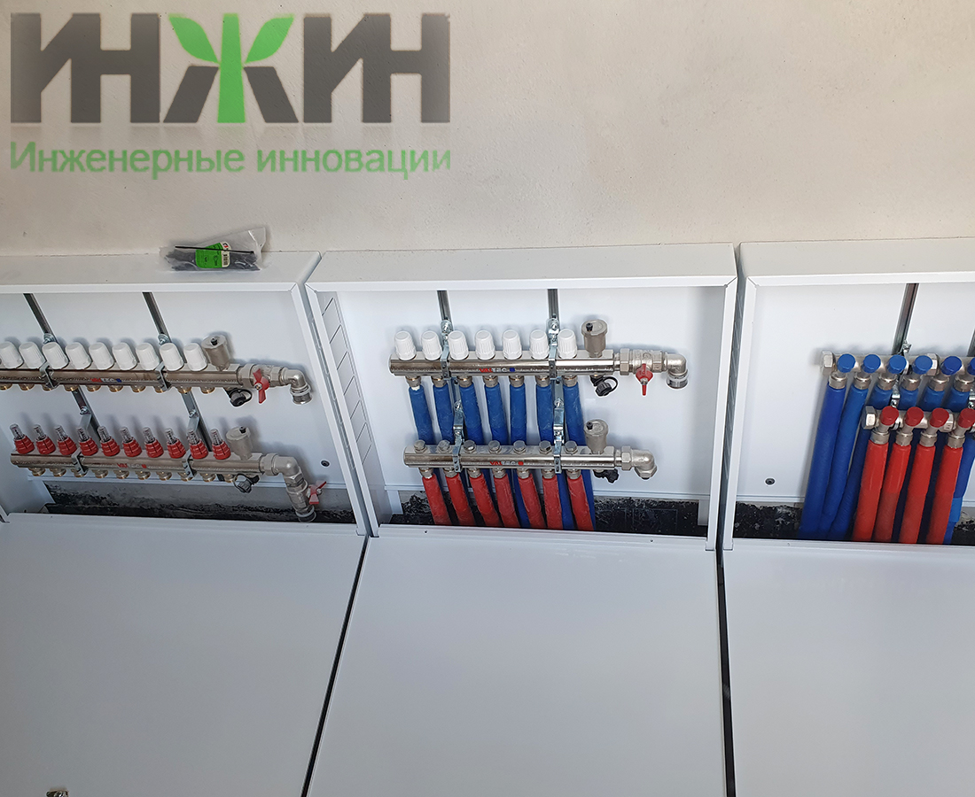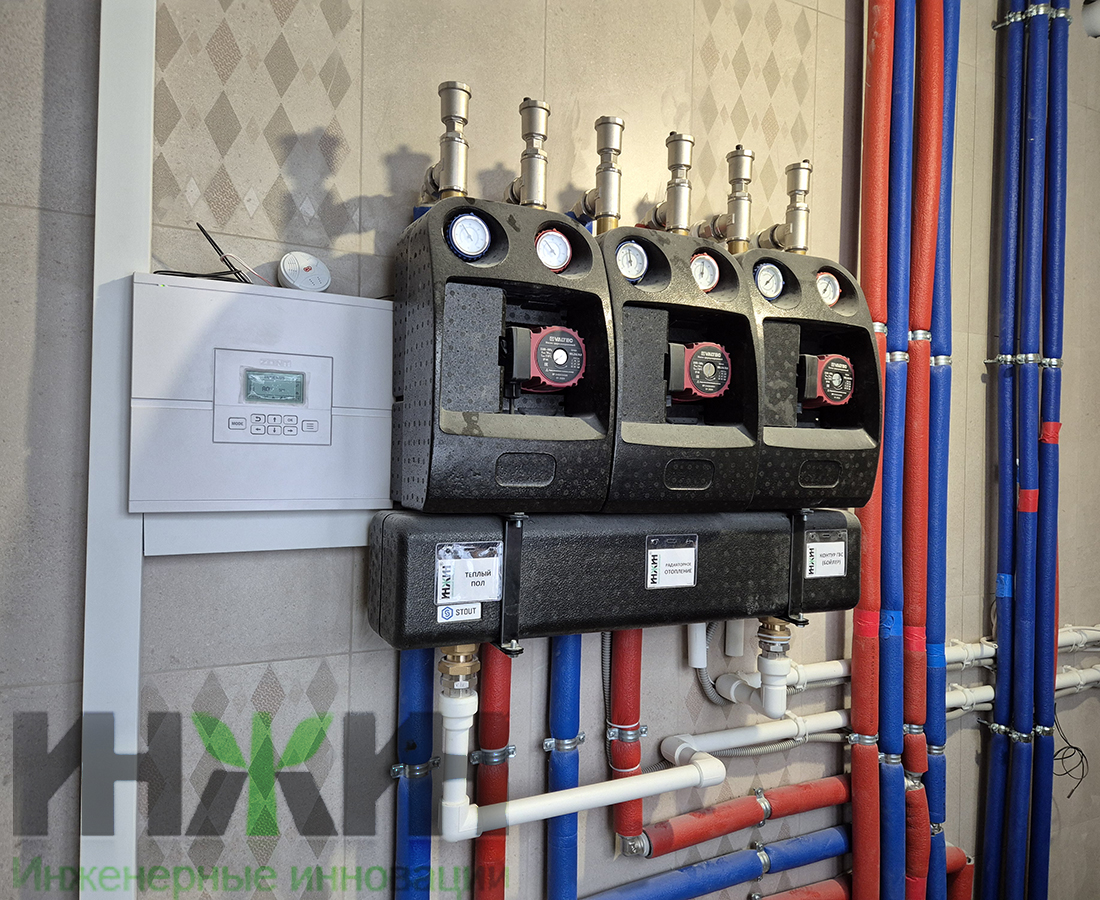 - Монтаж распределительного коллектора STOUT с насосно-смесительными группами;