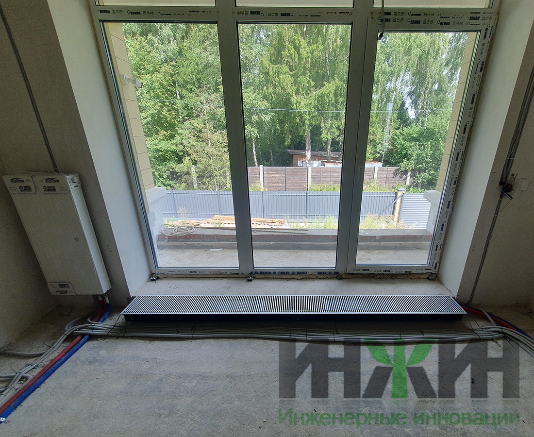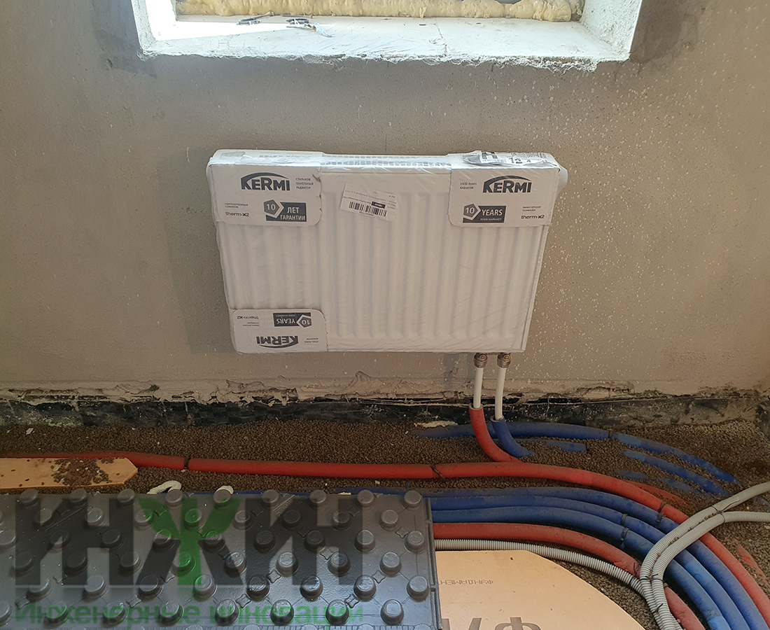 - Установлено 13 стальных панельных радиаторов Kermi с нижним подключением и двухвстроенных в пол конвекторов Varmann с естественной конвекцией;